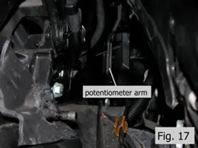 Note-left side cylinder only: A potentiometer lever is linked to the cylinder guide pin. Fig. 17 shows the potentiometer arm with the cylinder removed.